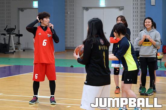 09일 고양 실내체육관 보조경기장에서 열린 고양오리온스 정재홍과 함께하는 1st 농구캠프에서, 정재홍이 여성 팬들에게 슛을 가르치고있다.