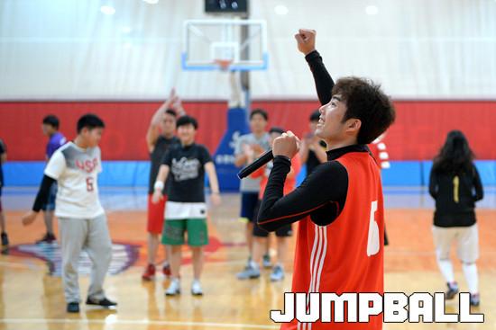 09일 고양 실내체육관 보조경기장에서 열린 고양오리온스 정재홍과 함께하는 1st 농구캠프, 팬이 슛을 집어넣자 정재홍이 손을 치켜올리며 환호를 하고있다.