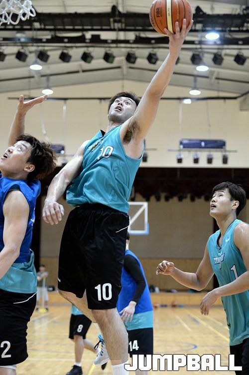 연습 경기를 하는 김태홍이 레이업슛을 시도하고있다.