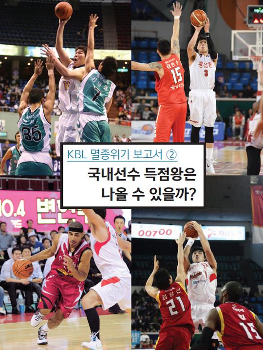 KBL(프로농구연맹)은 올해로 출범 20년을 맞았다. 지금까지 배출된 득점왕 역시 20명이다. 하지만 1997년 프로 원년 시즌부터 지금까지 국내선수 득점왕은 단 1명에 불과하다. 현재 삼성에서 뛰고 있는 문태영이 LG 소속으로 2009-2010시즌 평균 21.87득점을 올리며 득점왕을 차지했었다. 20명의 득점왕 중 19명이 모두 외국선수인 것이다.