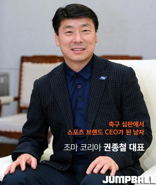 [점프볼=민준구 기자] 대한민국 최고의 축구 심판으로 불린 남자가 있었다. 1995년부터 2007년까지 국제축구연맹(FIFA)의 심판으로 활동하며 2010년부터 2013년까지 대한축구협회(KFA)의 심판위원장을 역임했던 조마 코리아 권종철 대표가 바로 그 주인공. 한때 그라운드의 포청천이었던 권종철 대표는 조마 코리아를 국내 최고의 스포츠 브랜드로 키우겠다는 일념으로 달리고 있었다. 그 일환으로 그는 프로농구로 눈길을 돌렸다. 울산 현대모비스와 인천 전자랜드 등 두 개 구단의 후원사를 맡으며 시장 개척에 나섰다.
