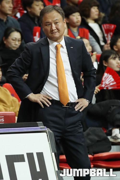 최근 경기에서 부진을 겪고 있는 슈터 전준범에 대해선 “언제까지 일일이 약점을 조목조목 말해줄 수는 없다”며 “결국 본인이 해결해야 할 문제다. 명색이 국가대표 슈터다. 책임감을 가지고 경기에 임해주길 바란다”고 분발을 요구했다.