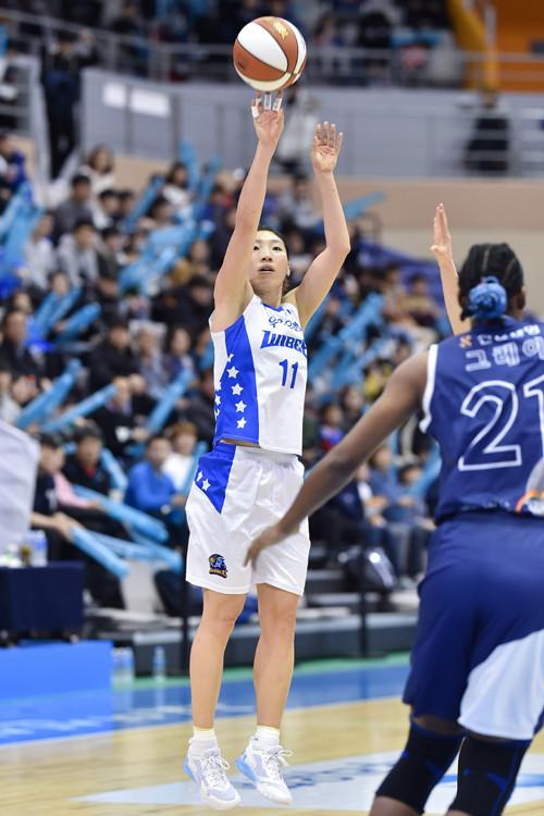 아산 우리은행은 4일 아산 이신순체육관서 열린 2017-2018 신한은행 여자프로농구 인천 신한은행과의 맞대결서 67-56, 승리했다. 우리은행은 이 날 승리로 2위 청주 KB스타즈와의 경기차를 3경기차로 벌렸다.