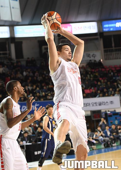 [점프볼=전주/강현지 기자] 김민수(36, 200cm)가 KBL 정규리그 통산 20번째 2,100리바운드를 기록했다.