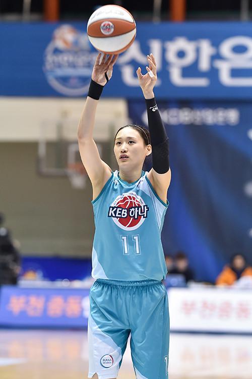 부천 KEB하나은행이 5일 구리시체육관에서 열린 신한은행 2017-2018 여자프로농구 구리 KDB생명과의 경기에서 84-65로 이겼다. 3점슛 4개를 성공시킨 강이슬은 21득점 9리바운드를 기록하면서 6연패 탈출에 앞장섰다.