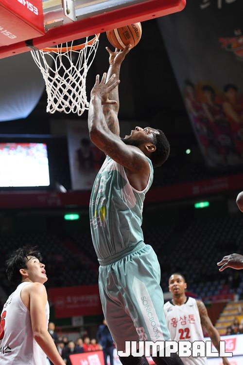 KGC인삼공사는 데이비드 사이먼이 32득점 11리바운드를 올리며 맹활약한 가운데 큐제이 피터슨(22득점), 전성현(17득점)이 경기를 끌어갔지만 나머지 선수들의 지원 사격이 부족했다.