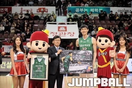 이후 경기장에는 과거 김주성이 자신의 부모님과 함께 출연했던 CF의 한 장면이 재생됐다. ‘선수’ 김주성을 넘어 효심 가득한 ‘아들’ 김주성의 앞날을 축하한 KGC인삼공사는 김주성과 그의 부모님을 위해 건강식품(정관장 천녹정)을 준비했다. 주장 양희종이 선수단을 대표해 김주성에게 선물을 건네며 인사를 나눴다.
