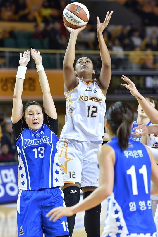 이날 KB의 트윈타워가 위력을 발휘했다. 박지수가 14점 15리바운드로 활약했고, 다미리스 단타스는 3점슛 1개 포함 19점 7리바운드 4어시스트를 기록했다. 강아정은 17점. 우리은행은 이상하게 공격이 풀리지 않았다. 나탈리 어천와가 19점으로 팀 내 최고 득점자에 올랐다.