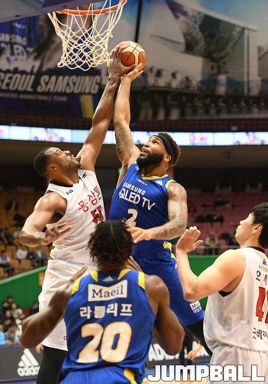 잠실에서는 삼성과 KGC가 맞붙는다. 두 팀은 올시즌 여러 차례 명승부를 연출해왔다. 최근 2경기 내용이 볼 만했다. 1월18일 삼성이 96-92로 이겼고, 1월30일에는 KGC가 전성현의 위닝 3점슛을 앞세워 94-91로 승리했다. 화끈하고 손에 땀을 쥐는 경기들이었다. 올시즌 상대전적에선 삼성이 3승2패로 앞서 있다.