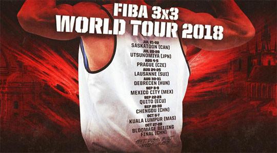 FIBA는 지난 화요일 2018년 FIBA 3x3 월드투어의 일정을 공지했다. 이번 시즌 월드투어는 오는 7월21일 캐나다 사스카툰을 시작으로, 일본, 체코, 스위스, 헝가리, 멕시코, 에콰도르, 중국, 말레이시아 투어를 거쳐 10월27일 중국 베이징에서 월드투어 파이널이 진행된다.