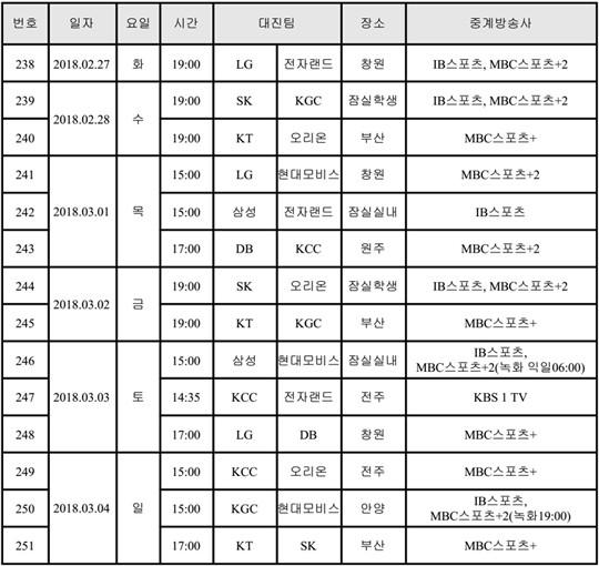 [점프볼=민준구 기자] 원주 DB와 전주 KCC의 정규리그 우승을 향한 막판 스퍼트가 펼쳐진다. 2위 자리를 호시탐탐 노리는 울산 현대모비스와 서울 SK의 경기 역시 준비되어 있다. 앞을 내다볼 수 없을 정도로 치열한 상위권 경쟁이 계속된 가운데 3월 1주차에는 어떤 경기들이 펼쳐질까. 다음은 금주 중계일정이다.