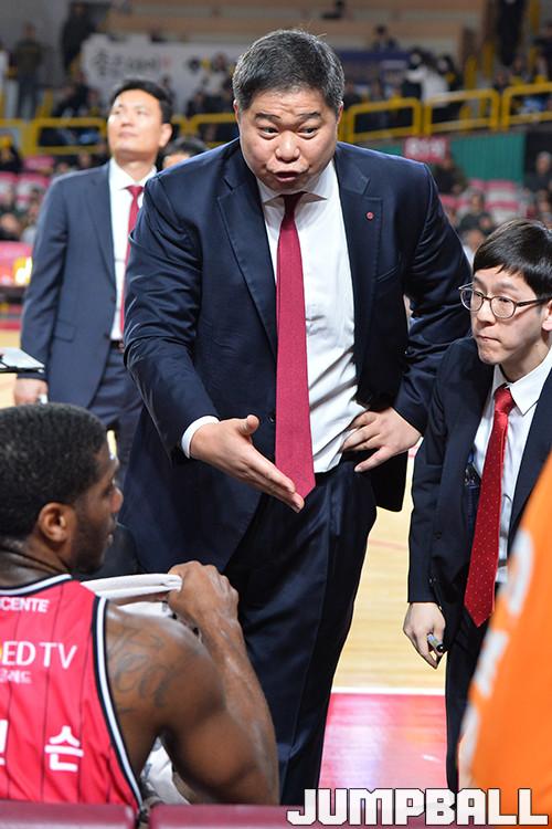 이어 브랜든 브라운(33, 193.9cm)을 경계했다. “켈리가 팔을 다치기는 했지만 혼자서 브라운을 막기는 쉽지 않다. 그래서 하이 포스트에서 치고 들어올 때 안쪽 수비에 집중해달라고 주문했다. 또 김낙현과 차바위의 외곽도 견제해달라고 얘기했다”고 덧붙였다.