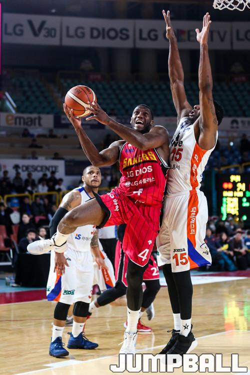 LG는 27일 창원실내체육관에서 열린 2017-2018 정관장 프로농구 인천 전자랜드와의 경기에서 76-73으로 승리했다. 국가대표팀 월드컵 예선 휴식기 이후 첫 경기를 이긴 LG는 동시에 전자랜드전 5연패를 끊어냈다.