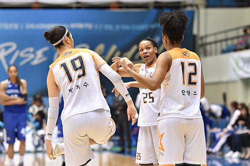 KDB생명은 3점슛과 자유투로만 득점을 쌓았다. 한채진과 김소담이 3점슛 3개를 합작했고, 이후 김소담에 이어 한채진이 김진영으로부터 파울 자유투를 성공시켰다.