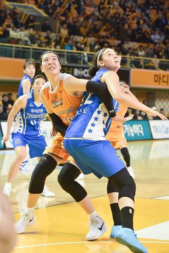 하지만 우리은행은 올시즌 KB스타즈와 손에 땀을 쥐는 우승 경쟁을 펼쳤다. KB스타즈는 높이가 좋은 팀이다. 신장 193cm 트윈타워 박지수와 다미리스 단타스가 지키는 골밑이 단단하다. 또한 두 선수는 슛 거리도 길어 수비하기가 상당히 까다롭다. 강아정 김보미 심성영도 외곽에서 힘을 보탰지만, 정규리그 우승에 한 끗이 모자랐다.