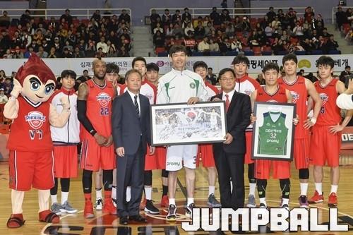 현대모비스가 김주성에게 건넨 선물은 인천 아시안게임 당시 모습이 담긴 기념액자. 이 액자 속에는 김주성과 양동근이 함께 태극기를 들고 코트를 누비며 우승을 만끽했던 모습이 있어 더욱 뜻 깊은 의미를 더했다. 또한 액자의 뒷배경은 김주성이 현대모비스전에 나섰던 사진들로 꾸며지면서 울산에서의 추억을 돌아볼 수 있게 했다. 마지막 기념식을 마친 김주성은 울산을 찾은 팬들에게 항상 감사하다는 인사를 건넸다.