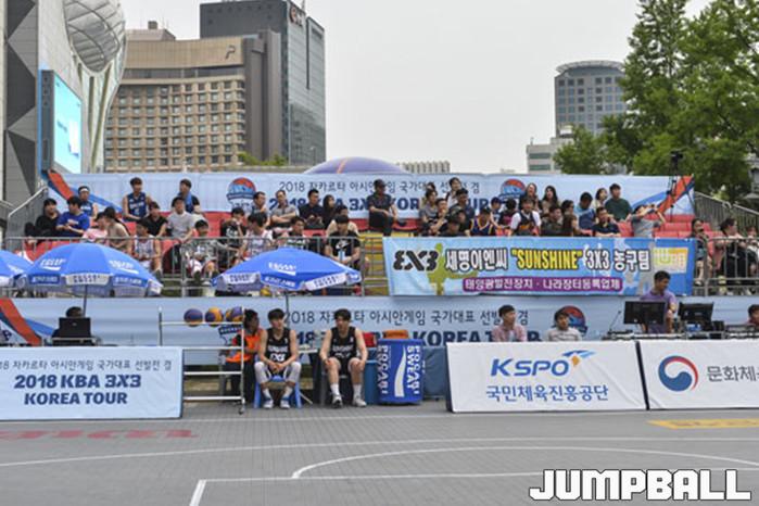 9일 서울마당에서 막 올린 2018 KBA 3x3 코리아투어 최강전(FINAL)은 2주 전 펼쳐진 8차 서울대회보다 더 많은 공을 드렸다. 함께 코리아투어를 즐겨주는 관중들의 편의를 위해 관중석과 조명을 추가해 더 안락한 환경에서 경기를 관전할 수 있게 준비했다.