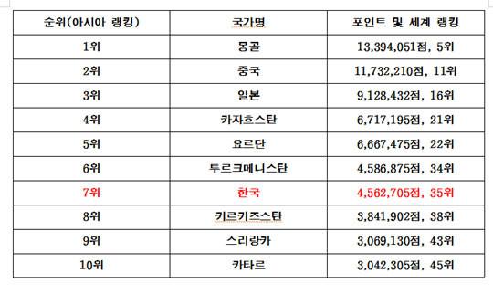 지난해만 해도 아시아 10위에 들지 못했던 한국으로선 당시 6위와 8위였던 카타르와 키르키즈스탄을 제쳤단 것 만해도 큰 성과를 얻은 셈이다.