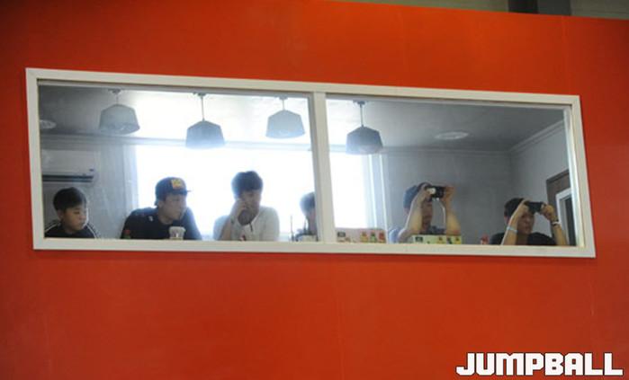 학생들은 TV와 경기장에서만 보던 KBL 선수들을 코앞에서 지켜보며 즐거워했다. 경기에 방해되지 않게 2층에서 조용히 대표팀의 연습경기를 지켜보며 각자의 핸드폰으로 영상까지 찍어가며 즐거워하는 모습이었다.