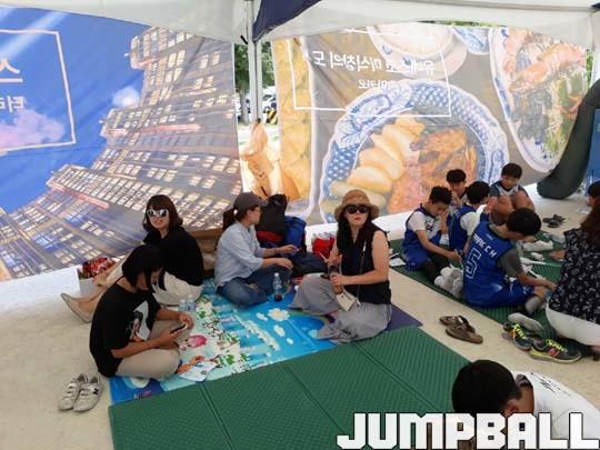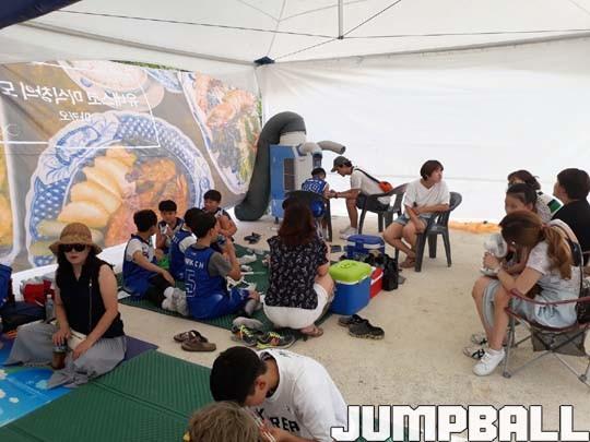 18일 서울 잠원한강공원 야외 코트에서 열린 아시아리그 3x3 챌린지에 첫 등장한 쿨링룸은 많은 이들의 관심을 받았다. 특히 초등부 선수들과 함께 대회를 찾은 학부모들은 쿨링룸 내에 돗자리를 깔아 휴식을 취했다.
