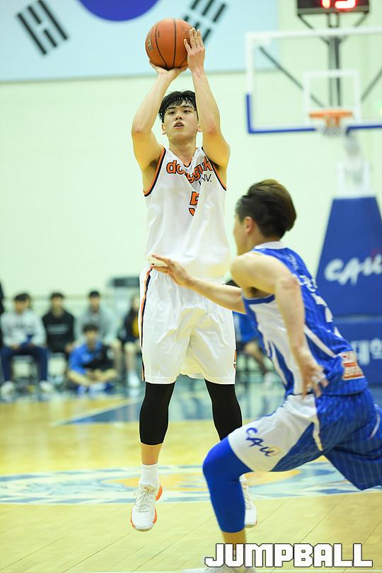 한 번 불붙은 동국대의 공격은 쉽사리 사그라들지 않았다. 변준형의 속공과 백승환(180cm, G)의 3점슛을 더해 한양대의 수비를 완벽히 무너뜨렸다. 한양대 김기범(188cm, F)과 이승훈(195cm, C)의 콤비 플레이도 빛났지만, 속도전에서 앞선 동국대가 전반 역시 48-33으로 마무리했다.