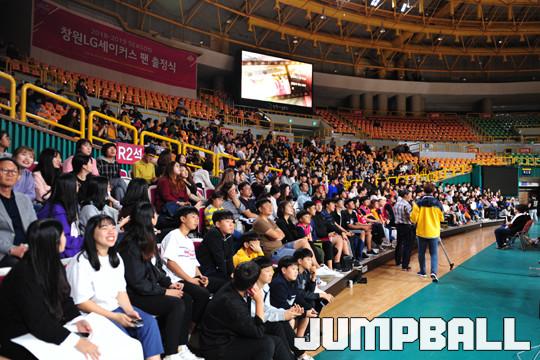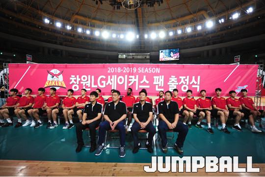 창원 LG는 29일 창원 실내체육관에서 부산 KT와의 연습경기를 마친 후 2018-2019시즌 팬 출정식을 개최했다. 약 한 시간 반가량 진행된 이번 행사는 LG 선수단의 시즌 출정 선언식과 함께 팬들이 직접 묻는 질의응답 시간, 승리 기원 V-포토월 운영, 단체 포토타임 및 선수단 도열 등 팬과 선수들은 하나가 되어 의미 있는 시간을 보냈다.