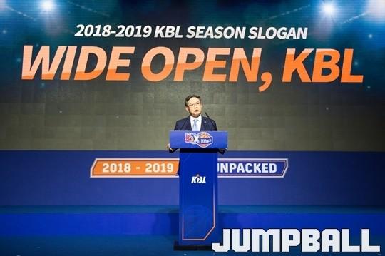 이정대 총재는 인사말을 끝으로 2018-2019시즌 KBL의 새 슬로건도 공개했다. 항상 열린 자세로 팬들과 소통해 하나 되어 나가아겠다는 의미를 담아 ‘WIDE OPEN, KBL’로 선정했다.
