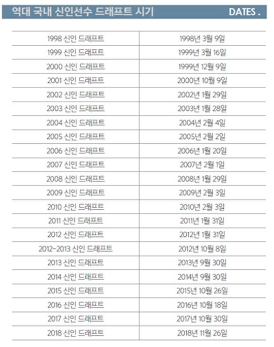 [점프볼=민준구 기자] 프로스포츠의 가장 큰 즐거움 중 하나는 매 시즌 새 얼굴이 등장한다는 것이다. 최근에는 대학을 굳이 졸업하지 않고 일찍 프로진출을 택하는 유망주도 늘어 관심을 더하고 있다. 그런데 날짜가 오락가락한다. 2017년 10월 30일에 열린 드래프트가 올해는 11월 26일에 개최된다. 시즌 개막(10월 13일) 후 한참 뒤에야 새 얼굴이 등장하는 셈이다. 날짜를 고정시킬 방법은 없는 것일까?