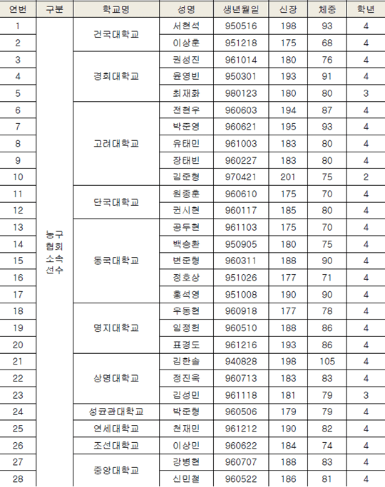 ▲ 2018 KBL 국내 신인선수 드래프트 참가자 명단