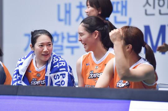 강아정은 KB스타즈의 리더다. 옆에서 박지수의 눈물을 지켜본 그는 리더다운 모습을 보이며 어린 박지수를 감싸 안았다. 강아정은 “(박)지수가 너무 부담을 가지는 것 같다. 우리가 우승후보로 지목된 게 지수가 있기 때문이라는 걸 잘 알고 있기 때문이다. 우리나라 최고의 센터지만, 아직 어린 선수다. 골밑에서 안정적으로 해주는 지수가 있기 때문에 내가 편하게 슛을 던질 수 있다. 미국에 갔다 와서 기량이 늘었다. 자신감을 갖고 뛰면 좋을 것 같다”고 박지수를 달랬다.
