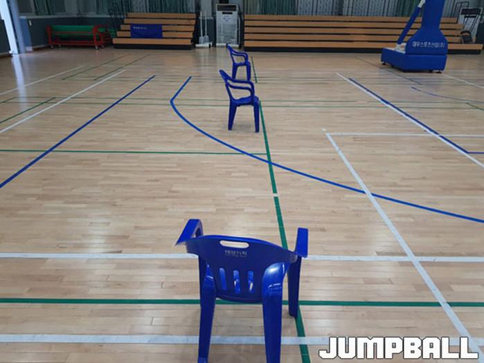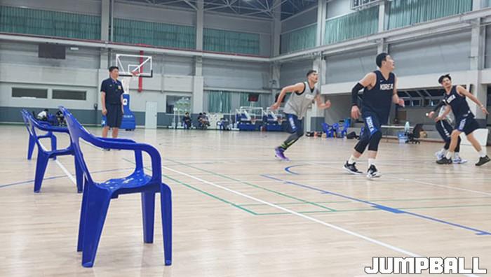그런 와중 연습 중반 나온 특이한 연습이 눈에 띄었다. 4명의 선수만 연습에 참여한 탓에 실전훈련을 진행하기 어려웠던 대표팀은 의자 3개를 코트 사이드 쪽에 위치해 좁은 코트에서 실전훈련을 진행했다.