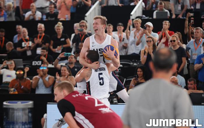 23일 네덜란드 암스테르담에서 열린 FIBA 3x3 월드컵 2019 남자부 결승에서 가드 데이먼 허프먼(8점, 1리바운드)이 결정적인 2점슛 세 방을 터트린 미국이 경기 막판까지 끈질기게 자신들을 추격한 라트비아를 18-14로 제압하고, FIBA 3x3 월드컵 2019 남자부 우승을 차지했다.