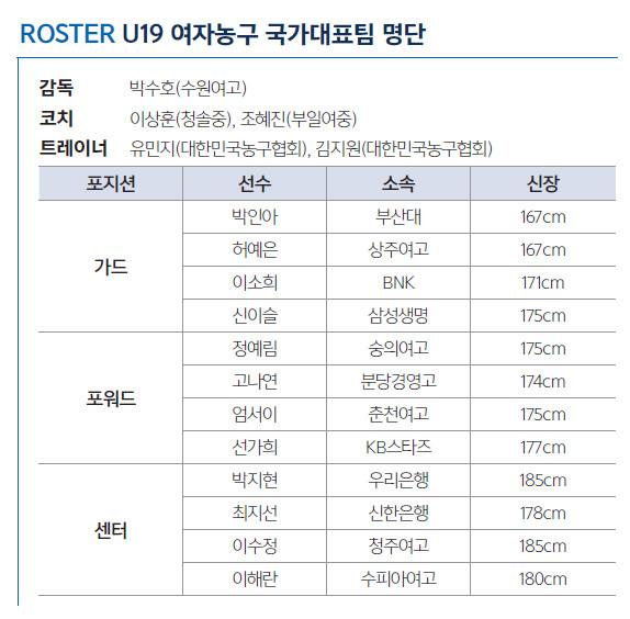 두 번째 U19 월드컵을 맞이한 박지현은 “U20 축구 월드컵을 보면서 많이 부러웠다. 우리와 비슷한 연령대의 선수들이 전국민적인 관심을 받는 걸 보니 대단하다고 생각했다. 조금은 질투도 나더라(웃음). 우리도 좋은 성적을 내면 국내에서 관심을 주시지 않을까. 정말 잘해서 결승까지 간다면 중계를 해주셨으면 좋겠다”며 많은 관심을 바랐다. 이소희는 맏언니로서의 든든함을 보였다. “이 멤버가 이대로 모이는 건 앞으로 어려울 것이다. 평생 한 번 있는 추억을 아름답게 마무리했으면 한다. 누군가 그런 말을 했다. 즐기자는 자를 이길 수 없다고. 우리는 모든 순간을 즐길 생각이다. 그러면 저절로 좋은 결과가 따라올 거라고 믿는다.”